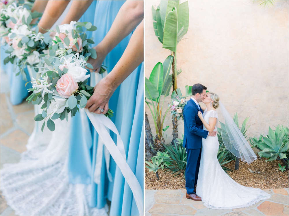 After the ceremony, we took photos around the church property and then we jumped on a Santa Barbara Trolley with the bridal party and headed to Butterfly beach. The photos at the beach turned out AMAZING!! Once we were finished there, we headed to the Santa Barbara Courthouse. It was such a fun way to explore the prettiest places in Santa Barbara and all the while the bridal party drank champagne and cheers-ed with the newlyweds the whole time.