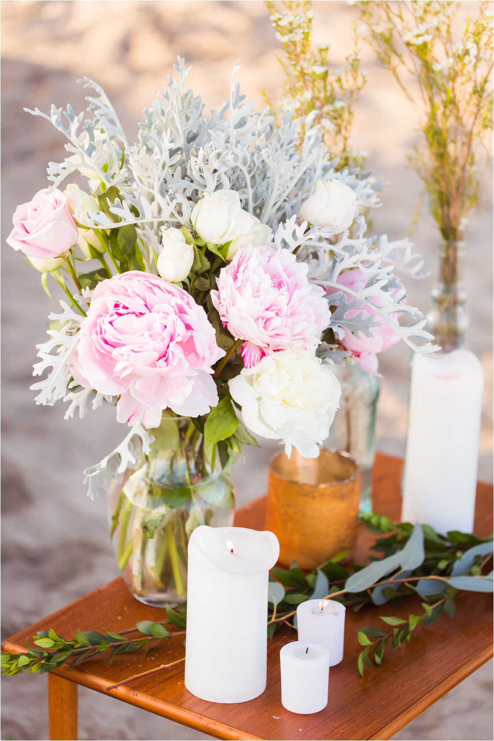 We were hiding in our car (thank the Lord for tinted windows) and as we watched her get out of the car she looked so BEAUTIFUL Jess started crying right away!! At the top of the stairs were roses and peonies and a golden birdcage with a note for her. Andrew was already there waiting for her and as soon as she got to the bottom of the stairs she started running toward her love!