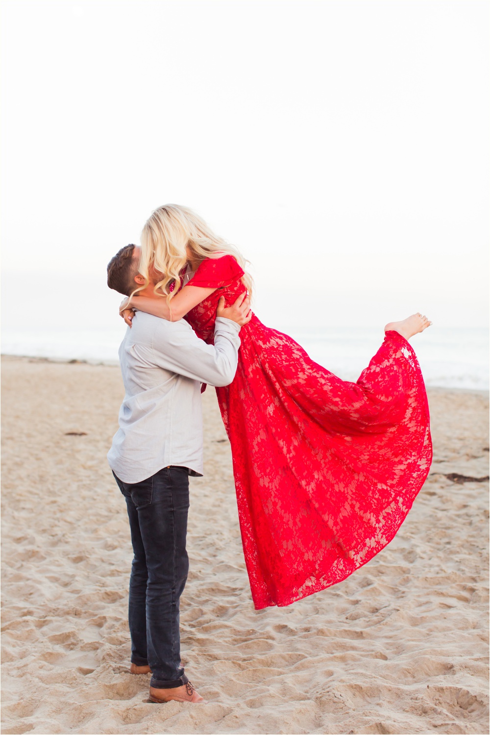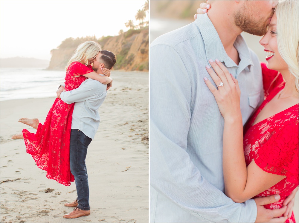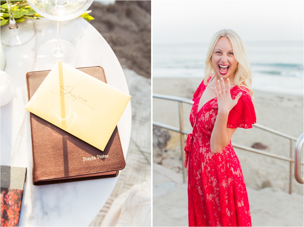 The next morning, Andrew gave her a card that read “Today is a very important day! Today is a day that we have been looking forward to for a loooong time. Today is a day that marks a new chapter in our beautiful love story.” And the wonderful thing about Andrew is, he doesn’t half ass anything. He does everything to the fullest, so he had the day planned perfectly! He planned for Shayna and her girlfriends to spend the day together on an “Andrew Sponsored” shopping spree at her favorite store which is where they bought the gorgeous red Free People dress (swoon worthy, we know), followed by hair and nail appointments, so she could look her best! And while all that was happening, Andrew and a dozen friends set up the proposal at Butterfly Beach. Then when everything was ready the girls dropped her off.